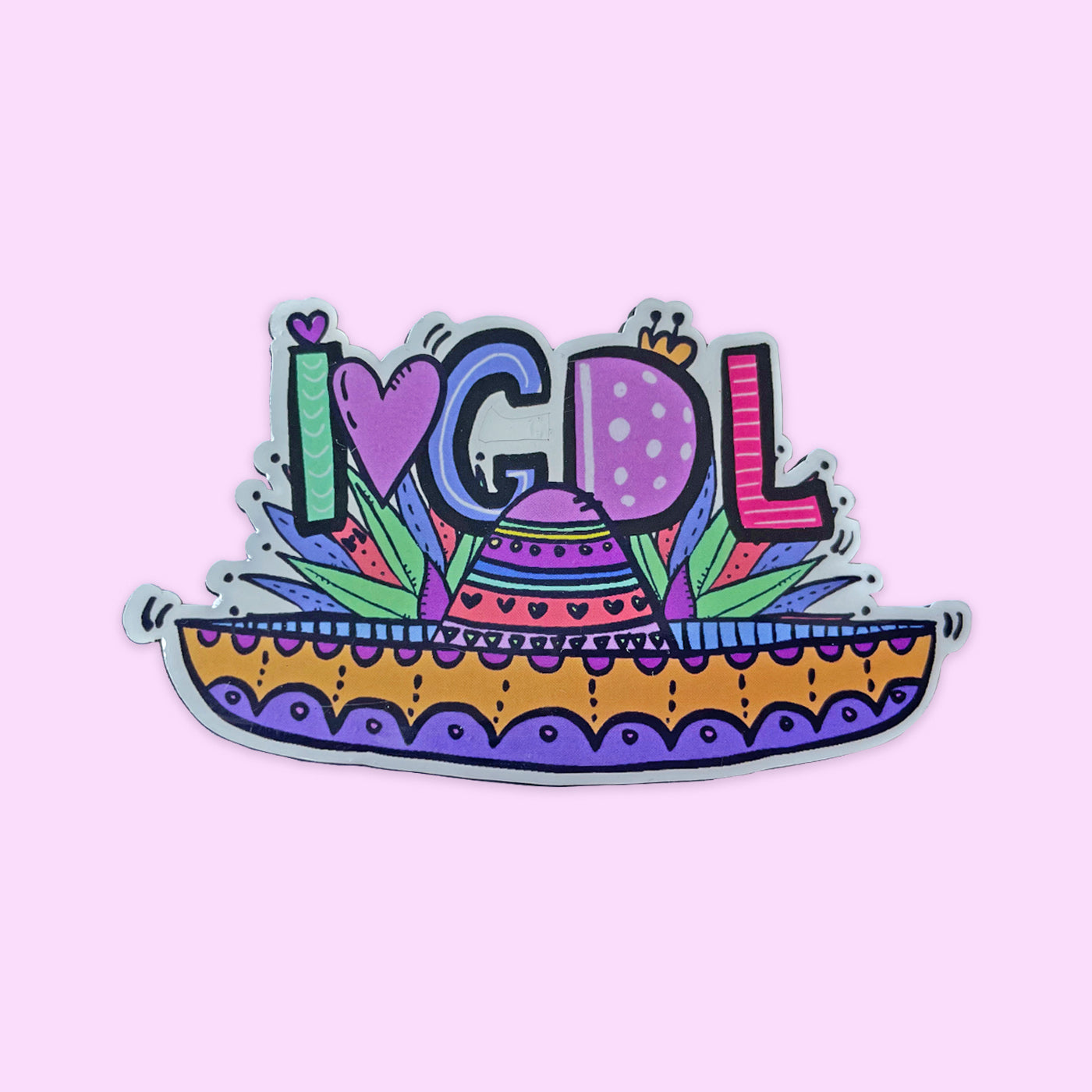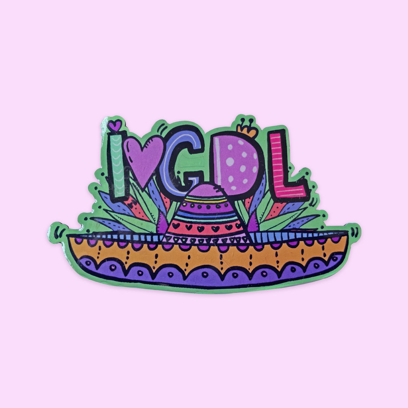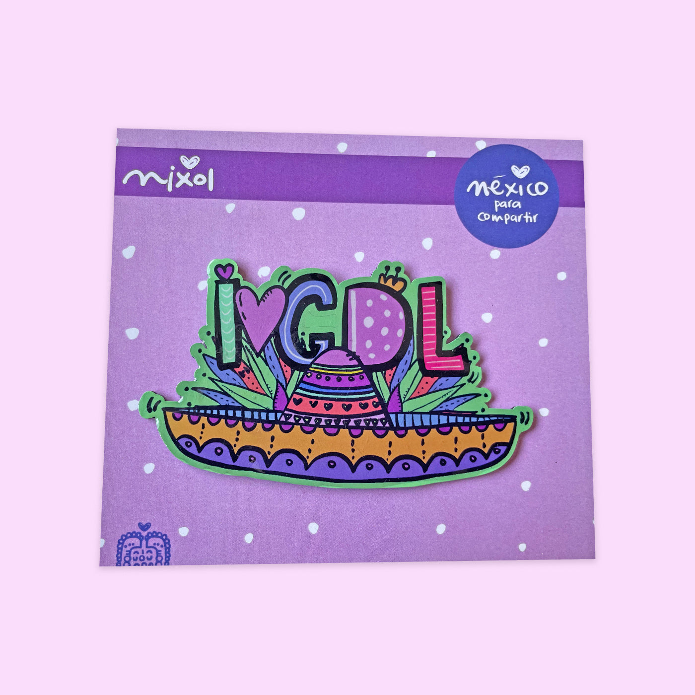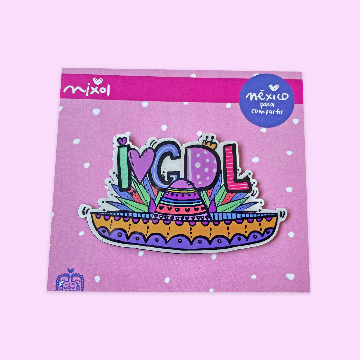 Imán de I love GDL y sombrero con cubierta plastificada.