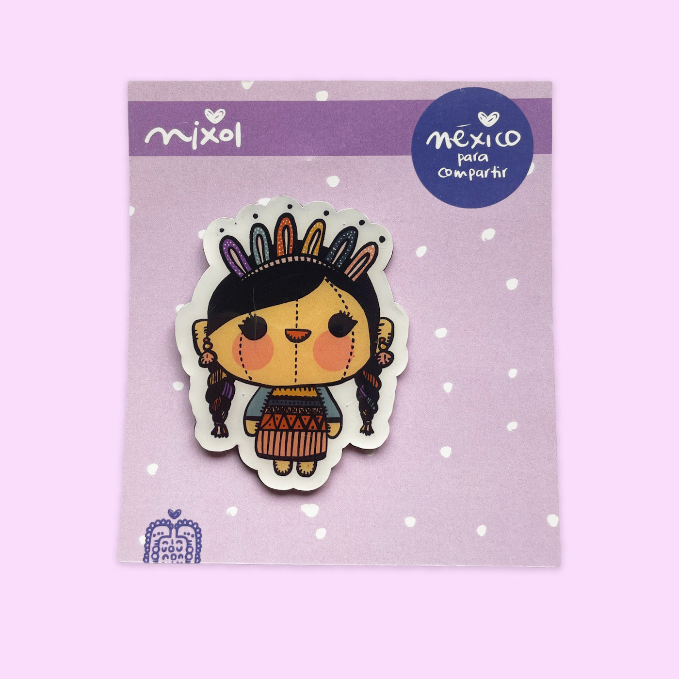 Imán edición especial de la muñeca María con postura normal y cubierta plastificada.