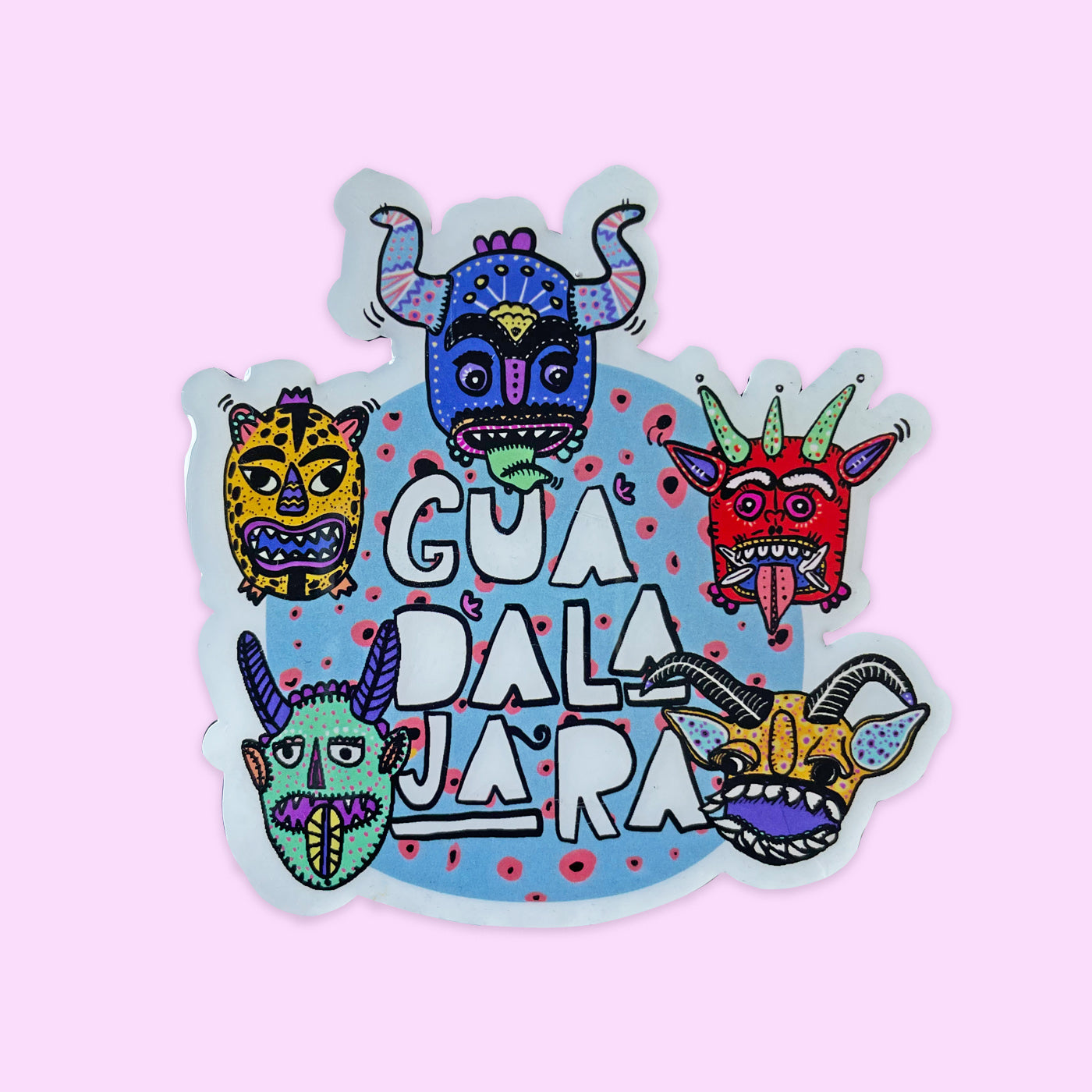 Imán de Tastuanes fondo azul de Guadalajara con cubierta plastificada.