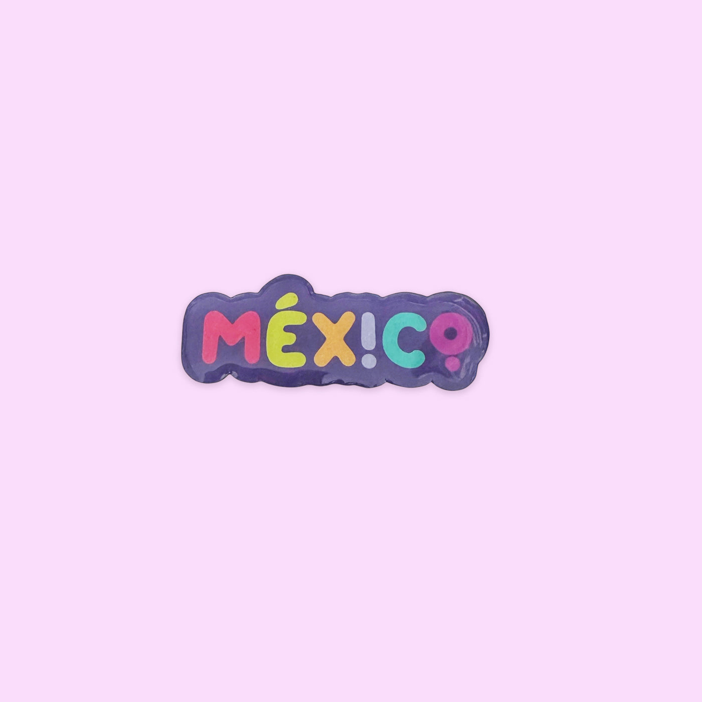 Imán México Letras Morado con cubierta plastificada.