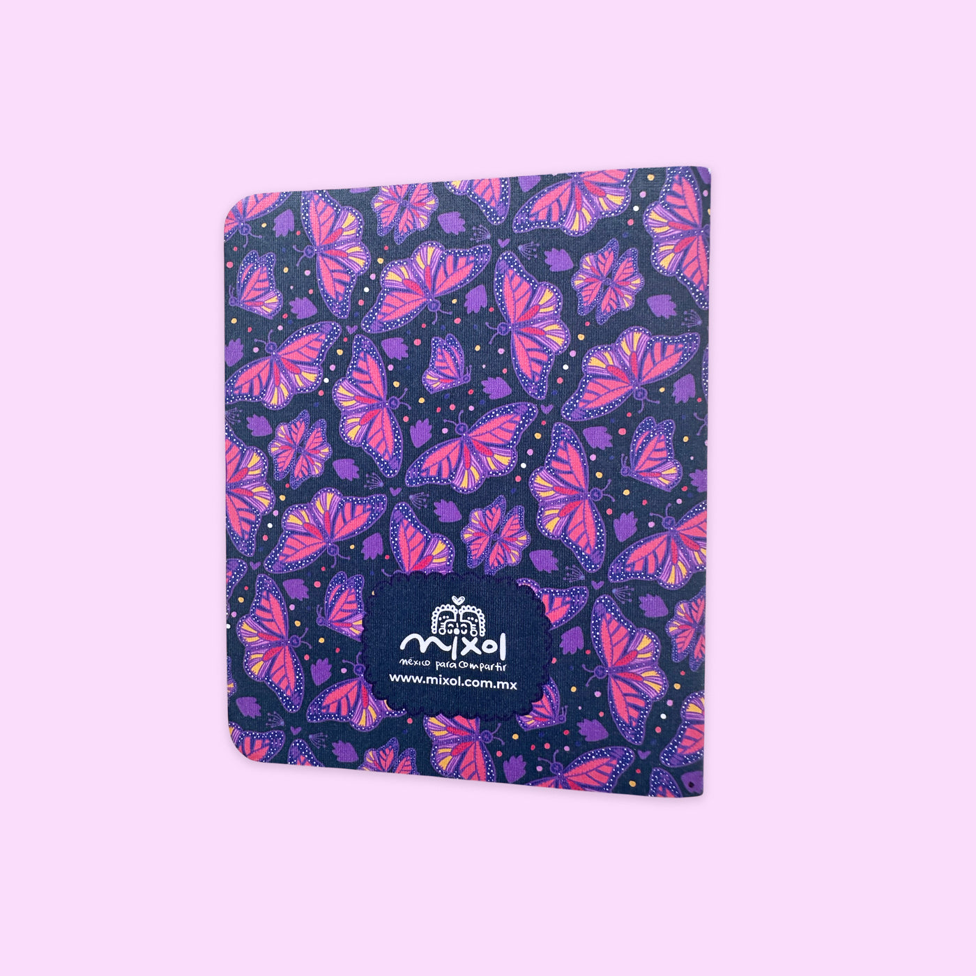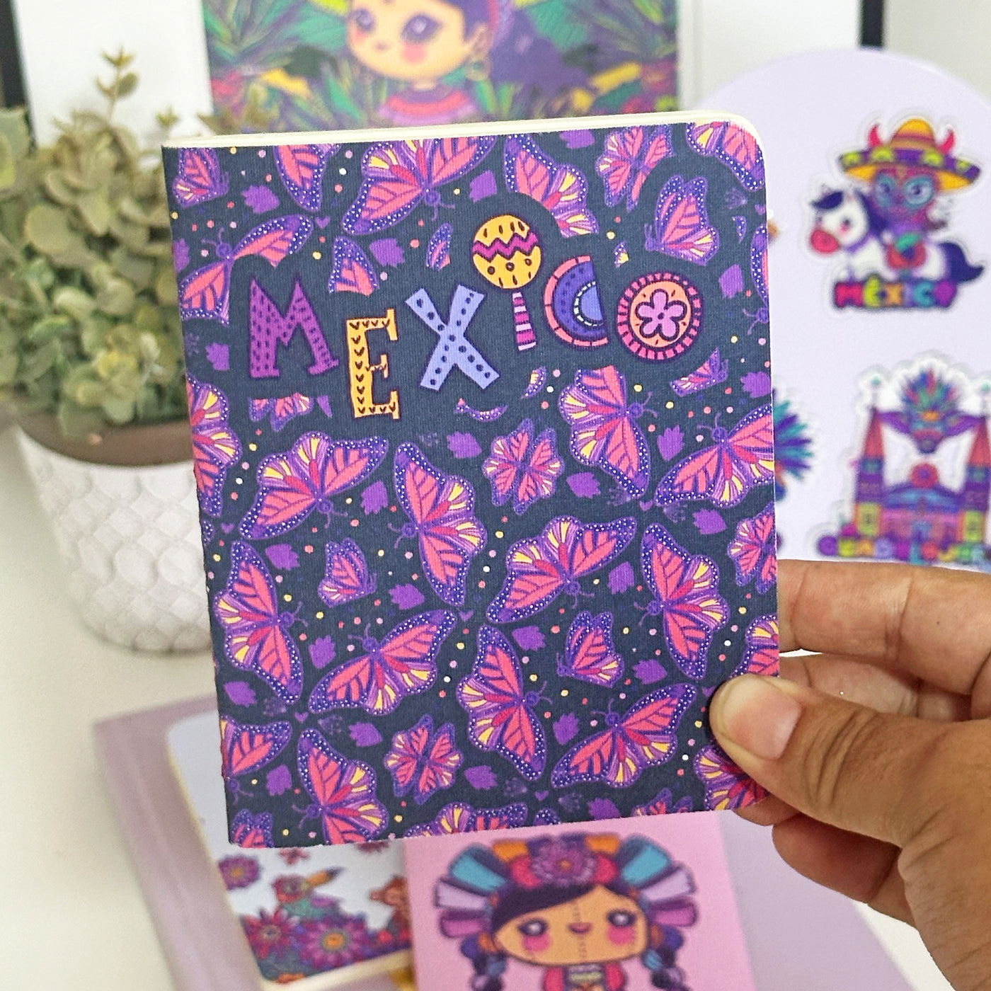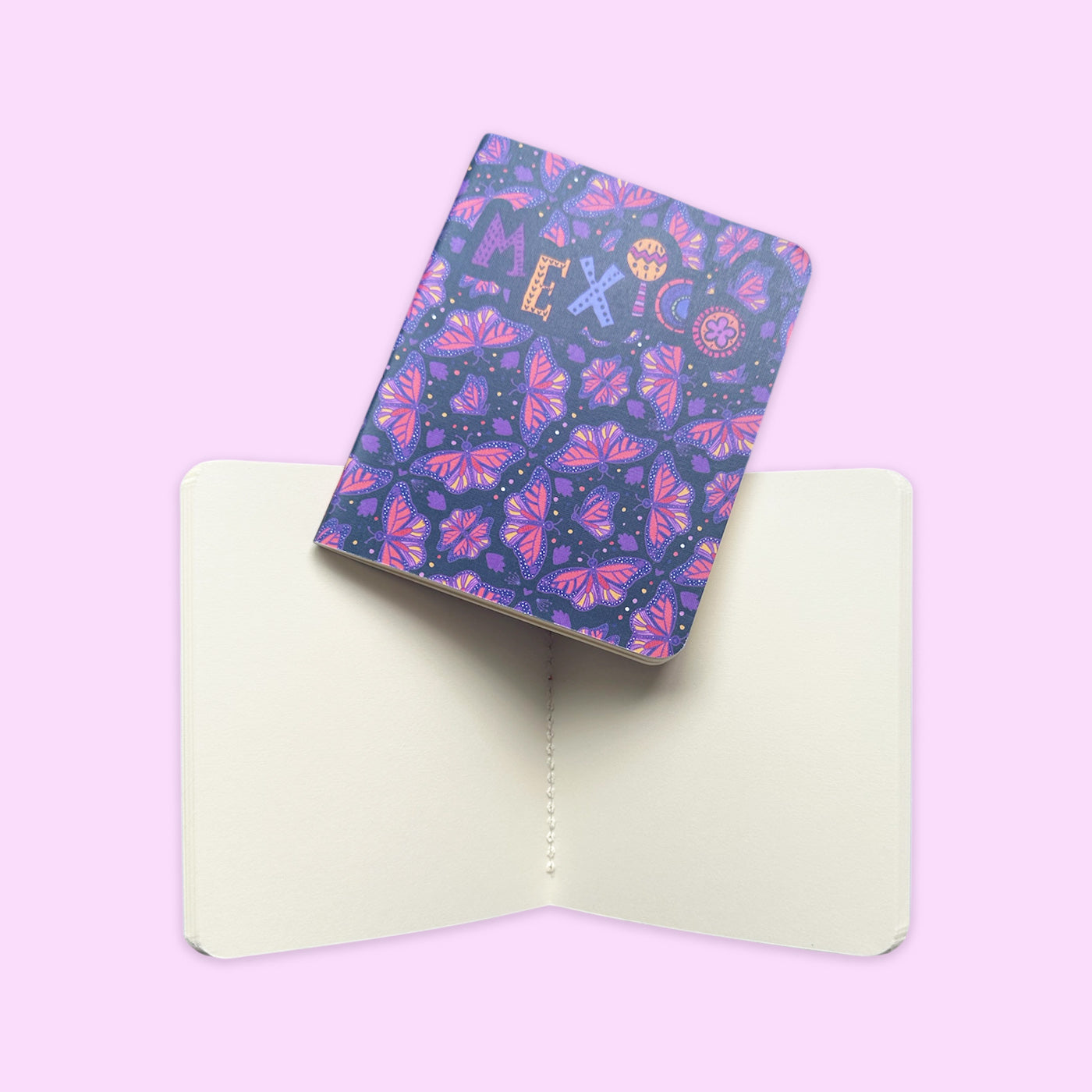 Libreta tamaño pocket de 11 x 13 cm, cosidas con pasta texturizada blanda.