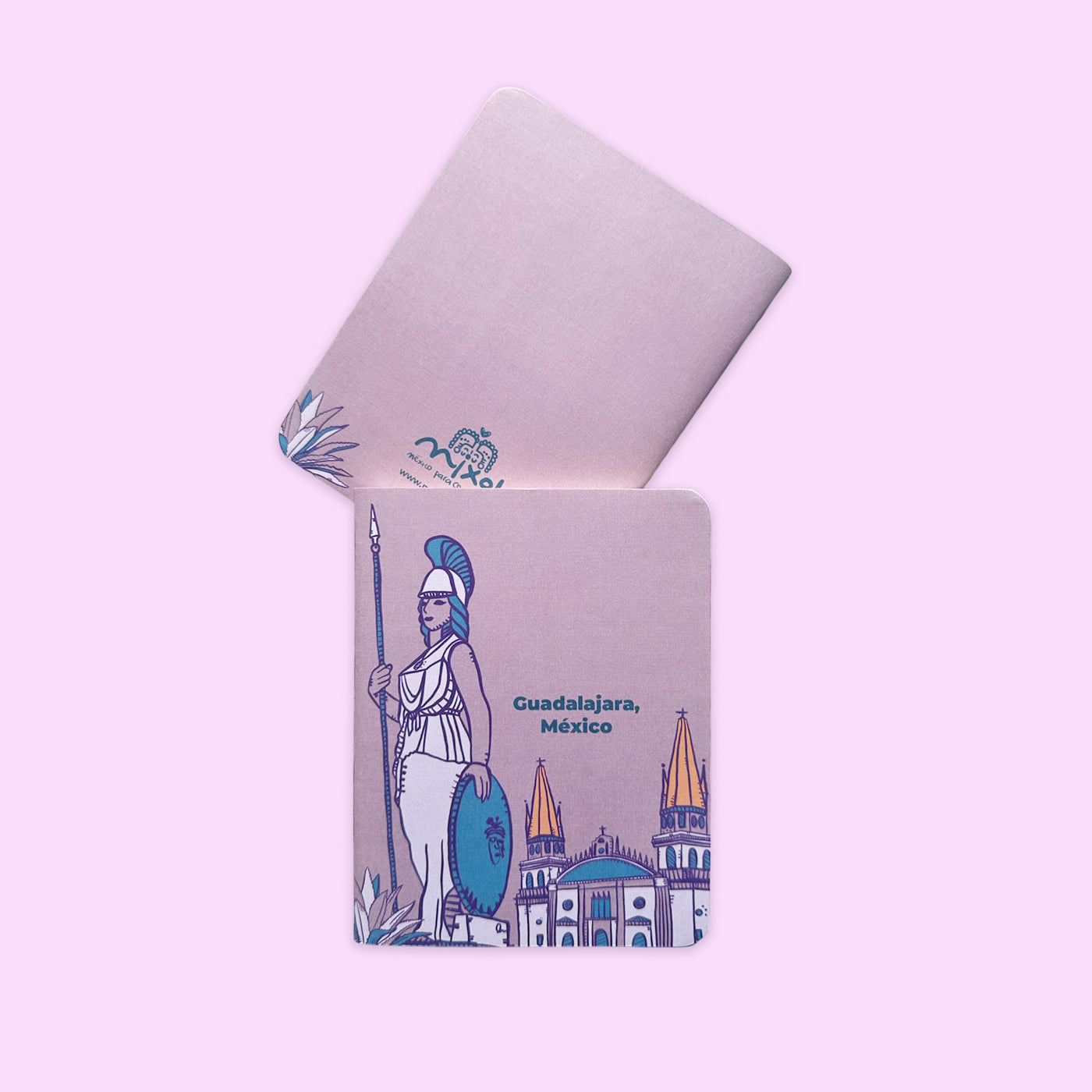 Libreta tamaño pocket de 11 x 13 cm, cosidas con pasta texturizada blanda.