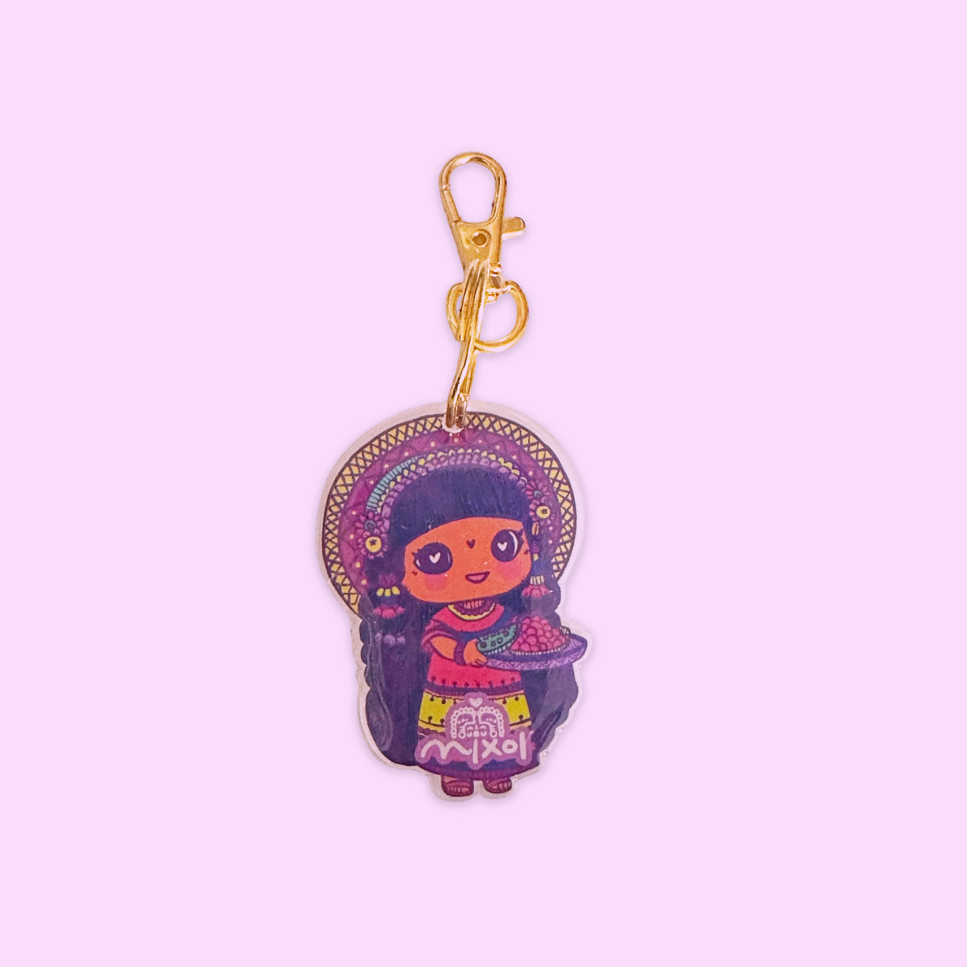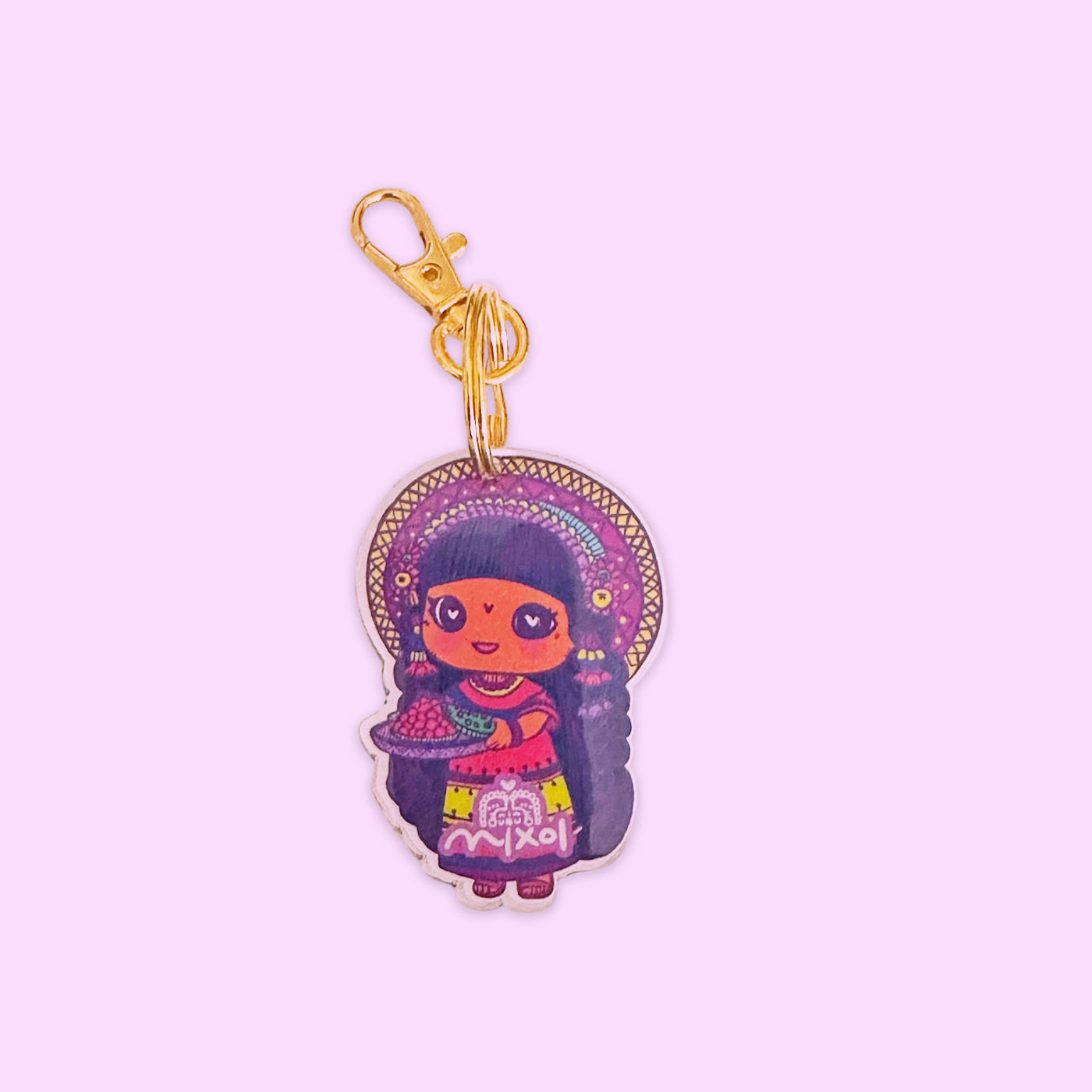 Llavero de acrílico transparente con resina de Mercadito doble vista.
