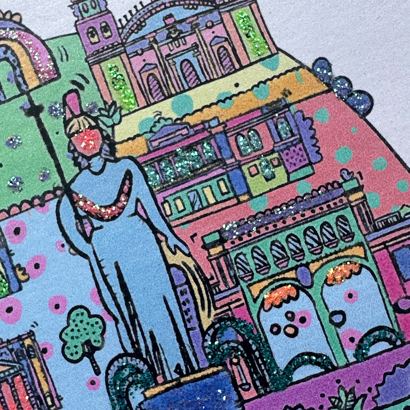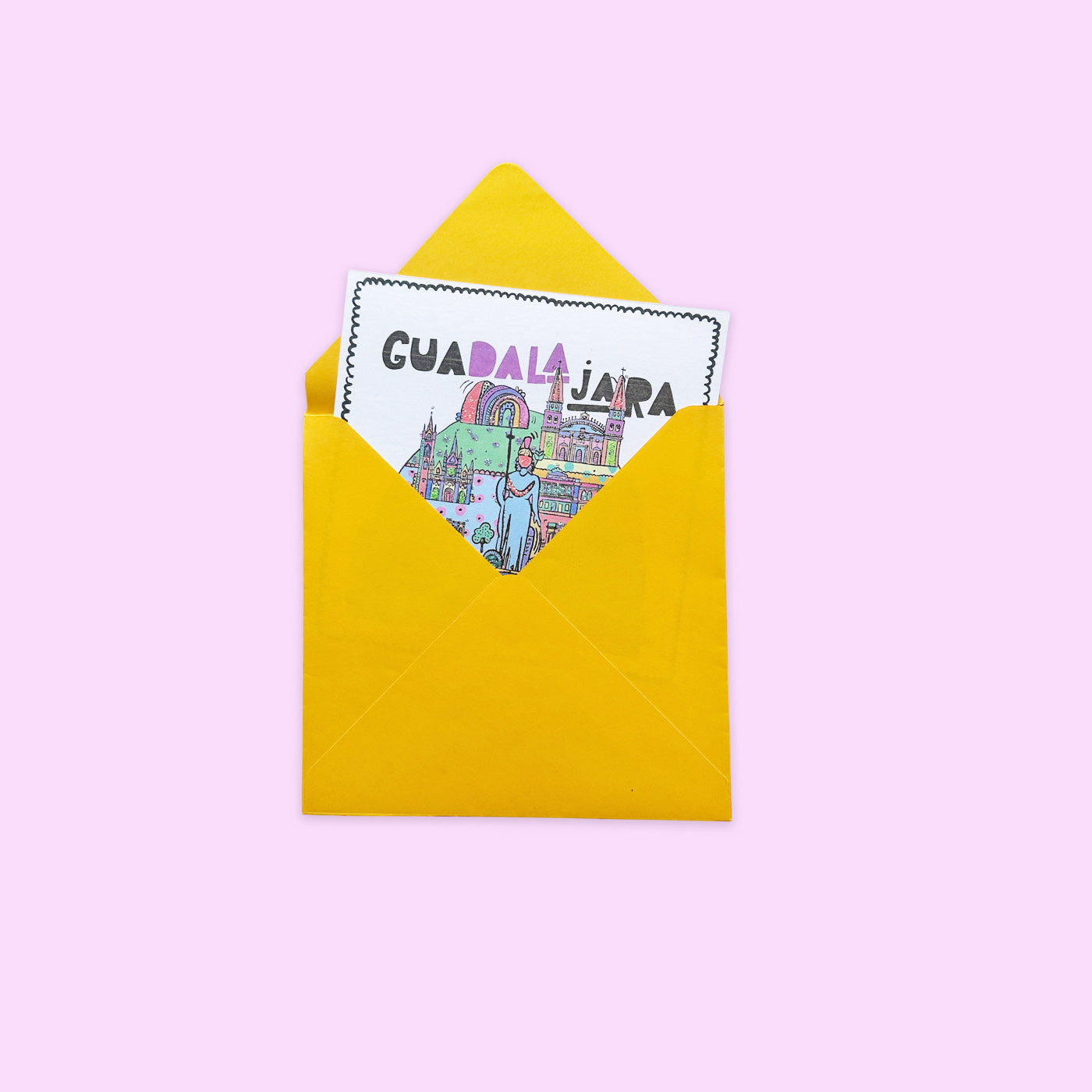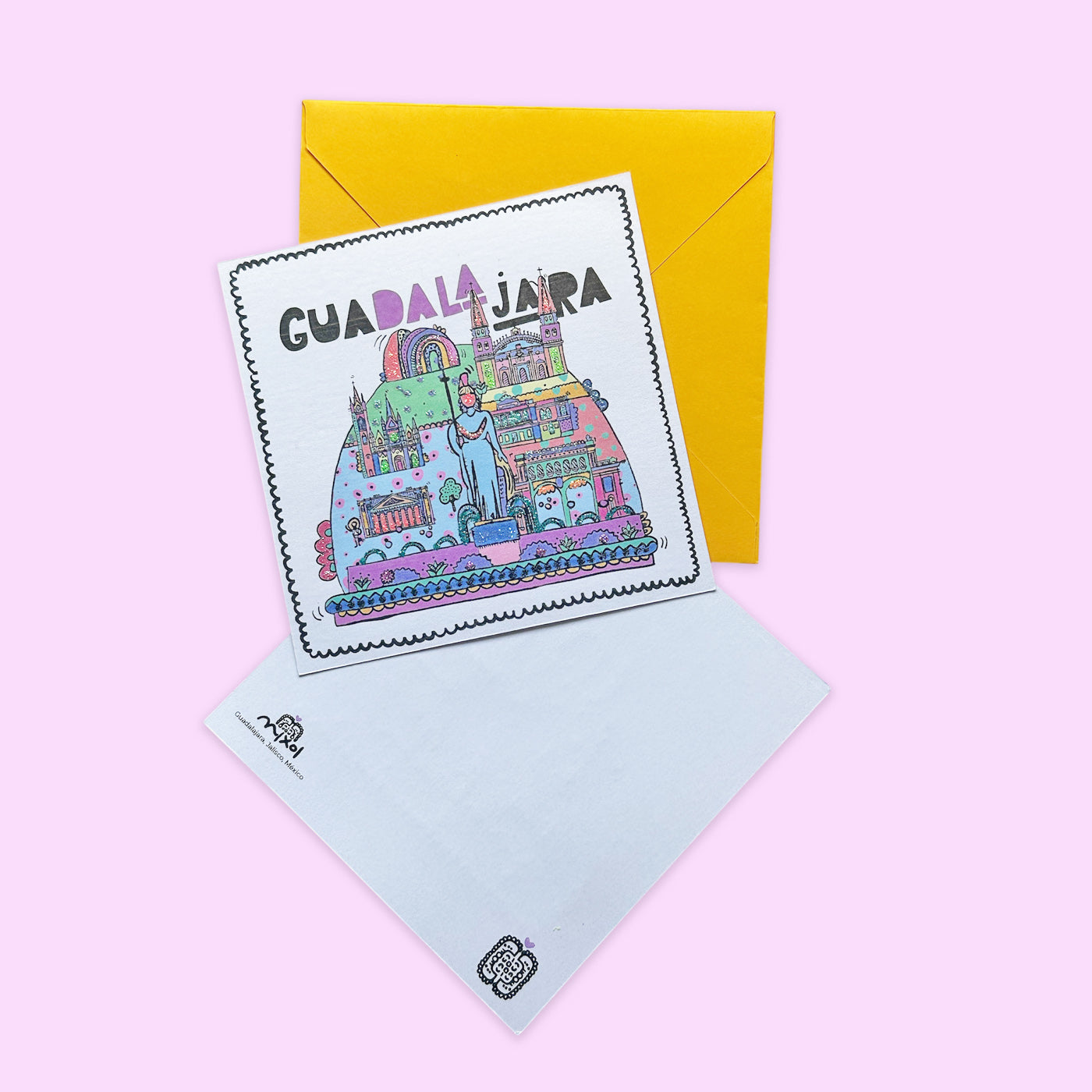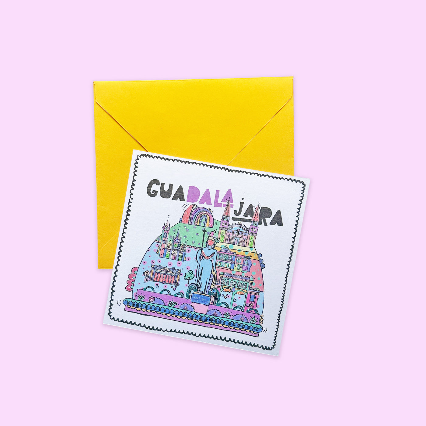 Postal impresa en cartulina Stardeam de 285g de 14 x 14 cm.