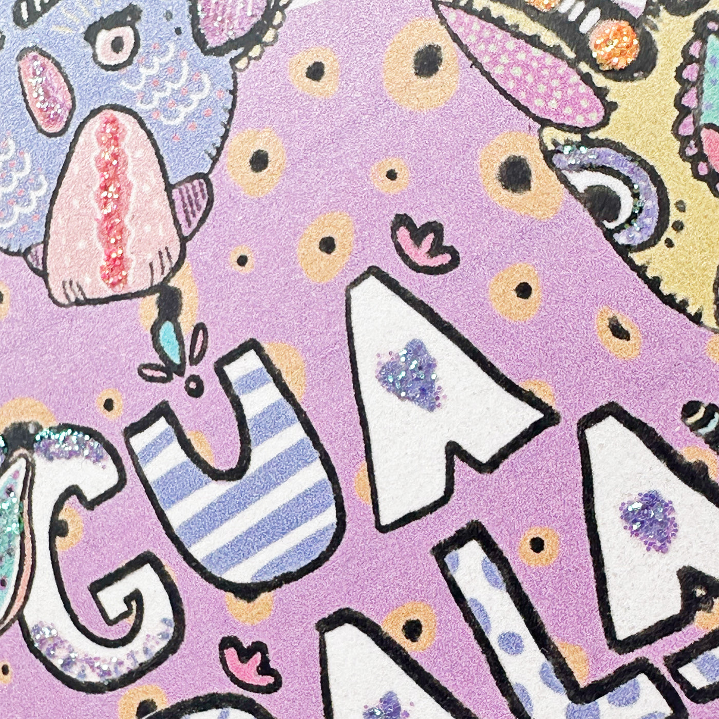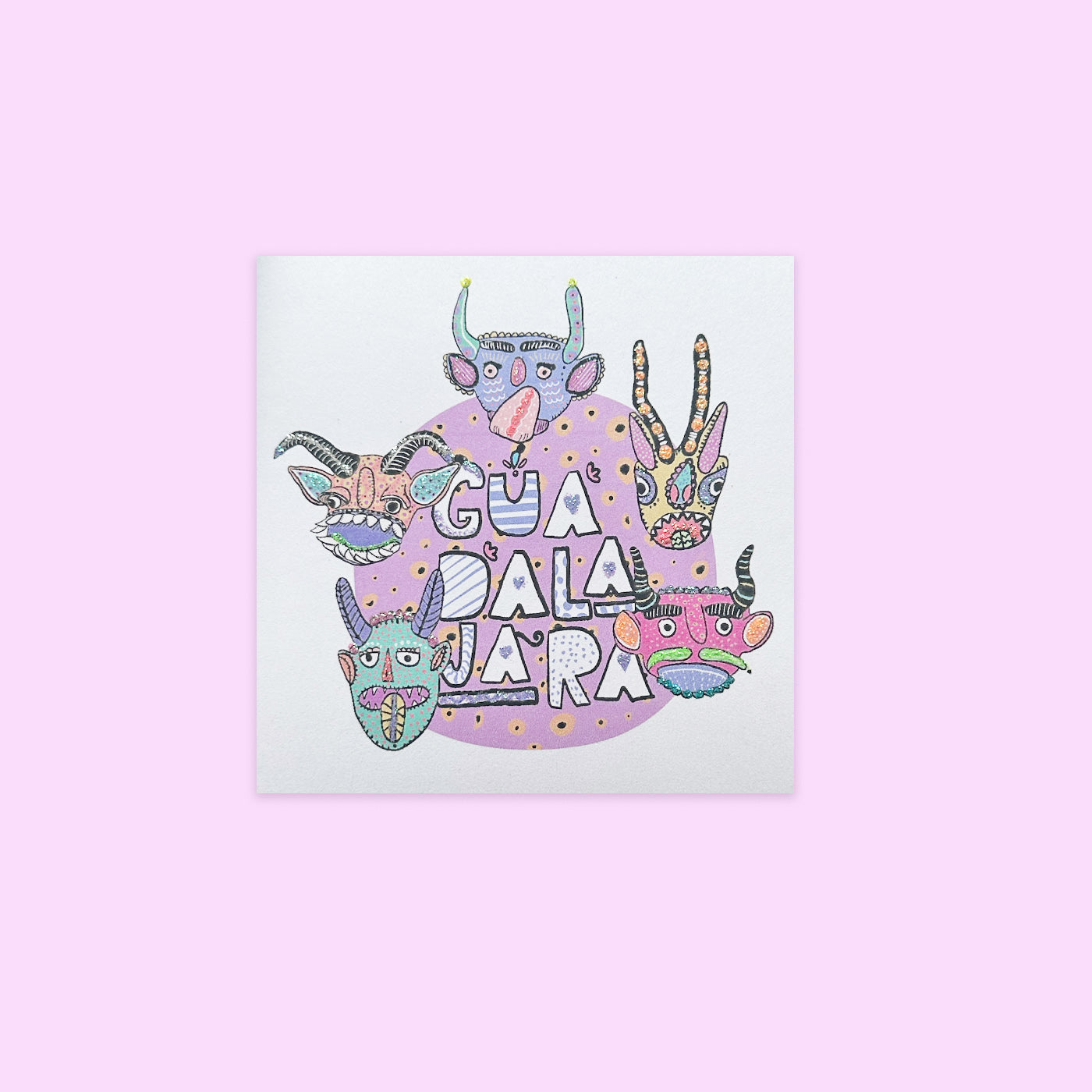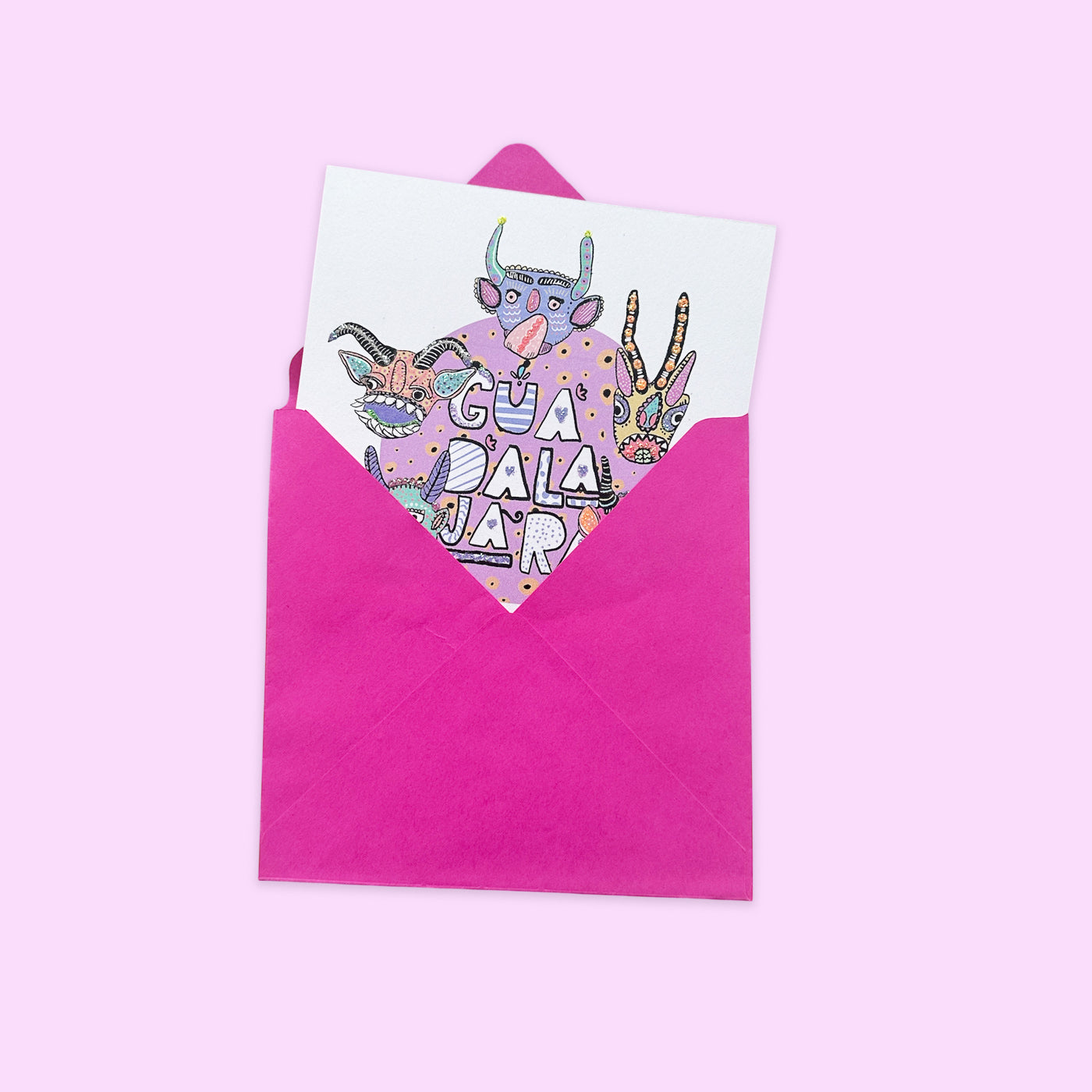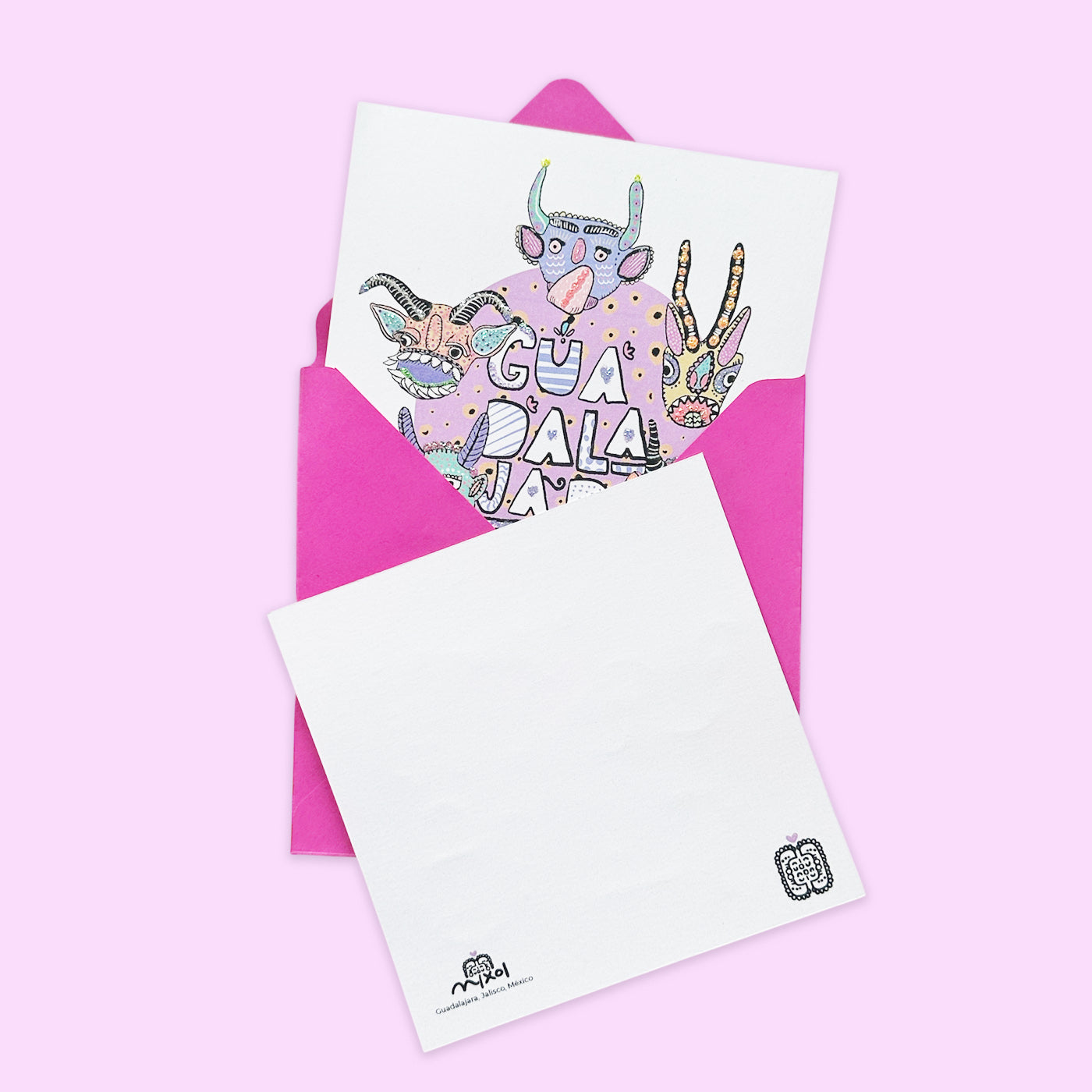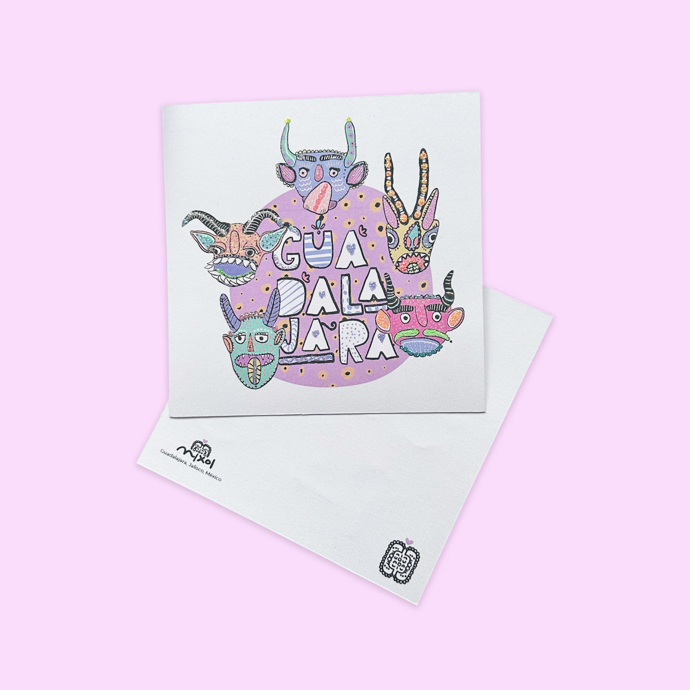 Postal impresa en cartulina Stardeam de 285g de 14 x 14 cm.