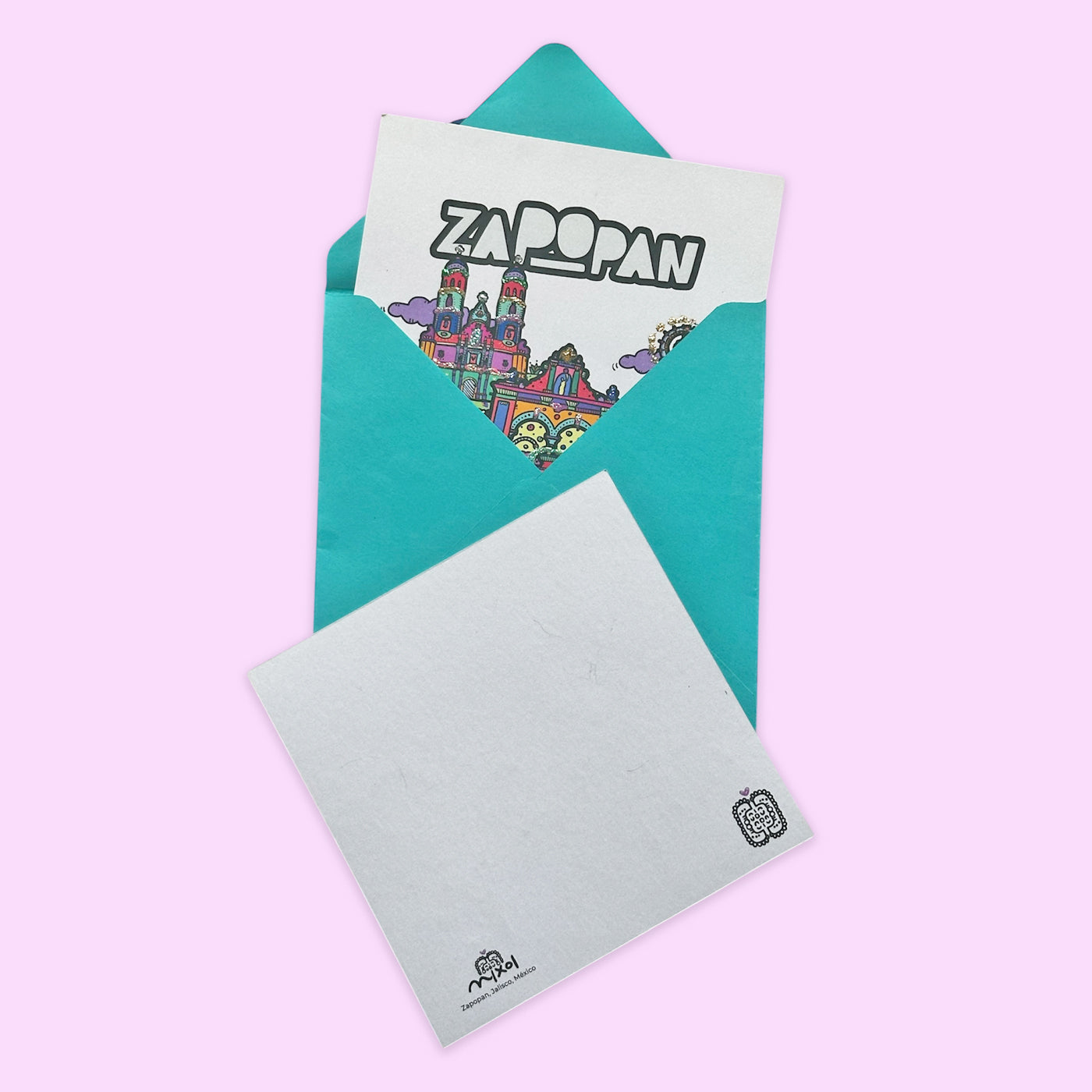Postal impresa en cartulina Stardeam de 285g de 14 x 14 cm.