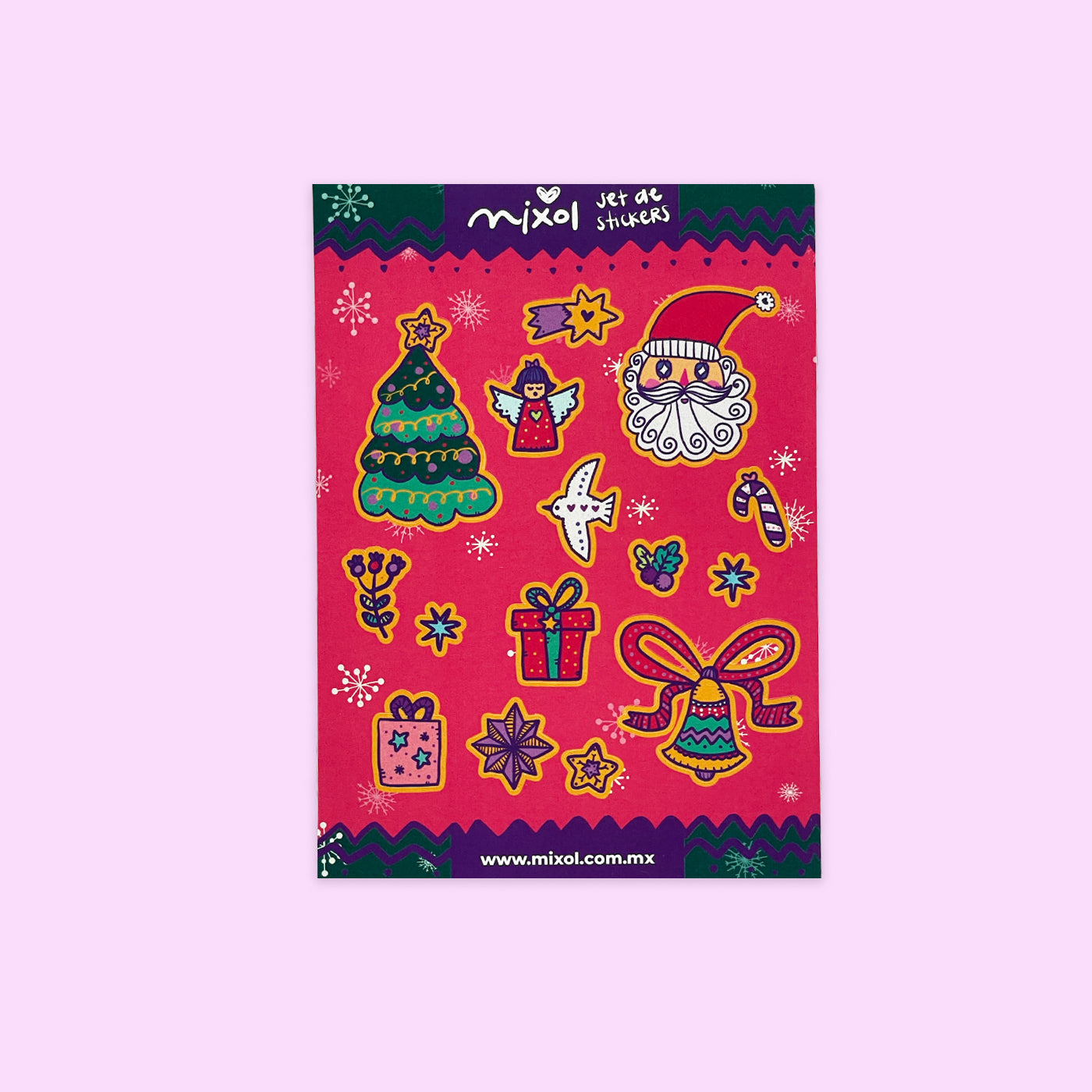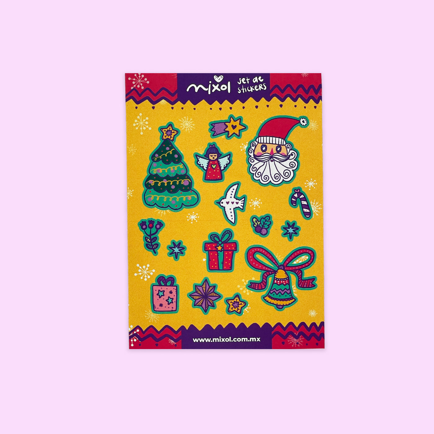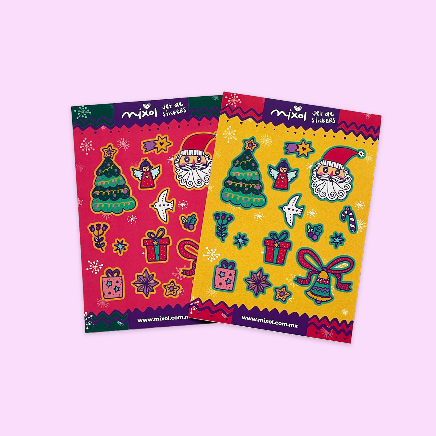 Set de Stickers de Navidad con fondo rojo o amarillo.