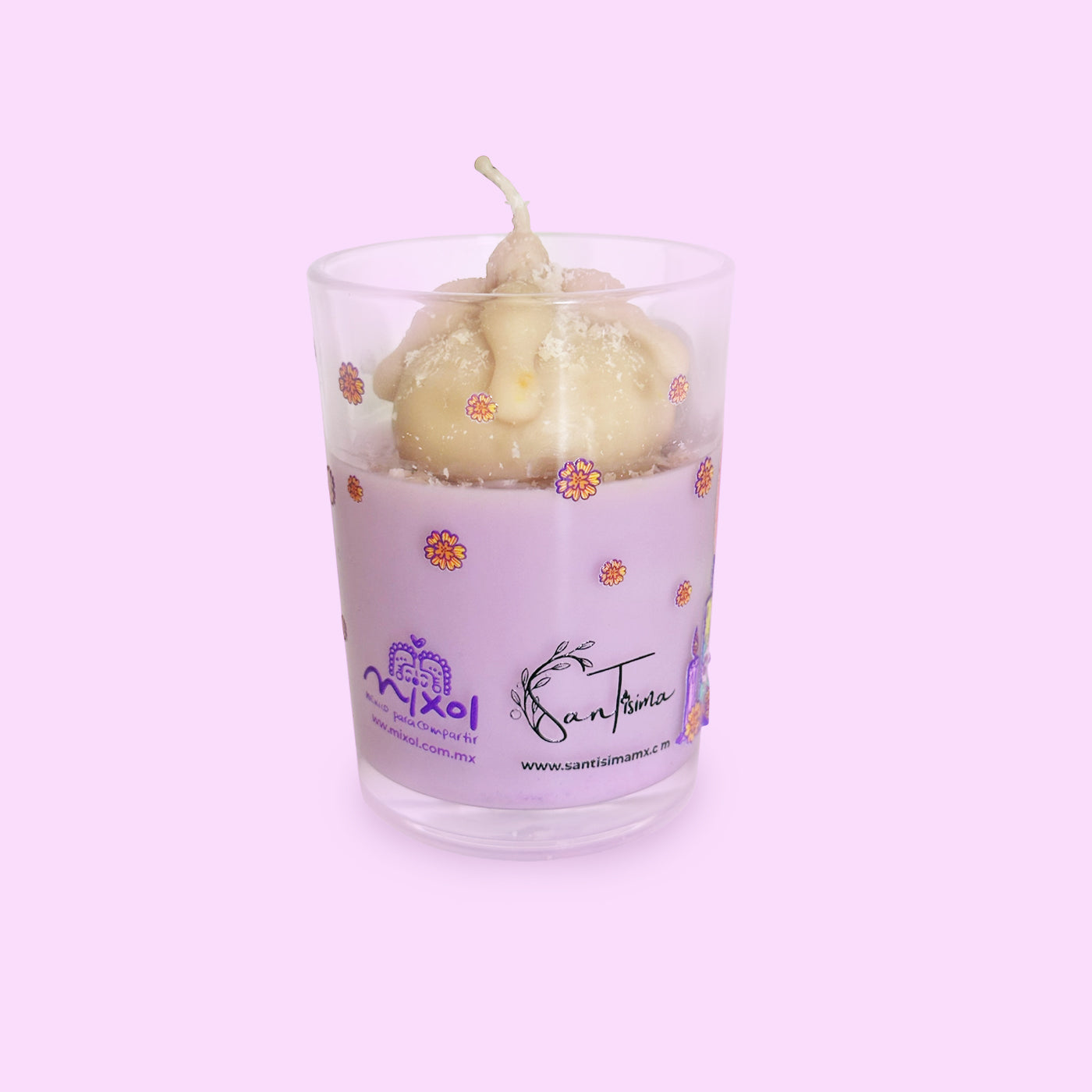 Vaso de vidrio de 10 cm de altura con circunferencia de 7 cm.